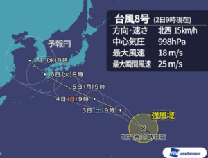 以下は今回の台風8号の進路予想図です。
